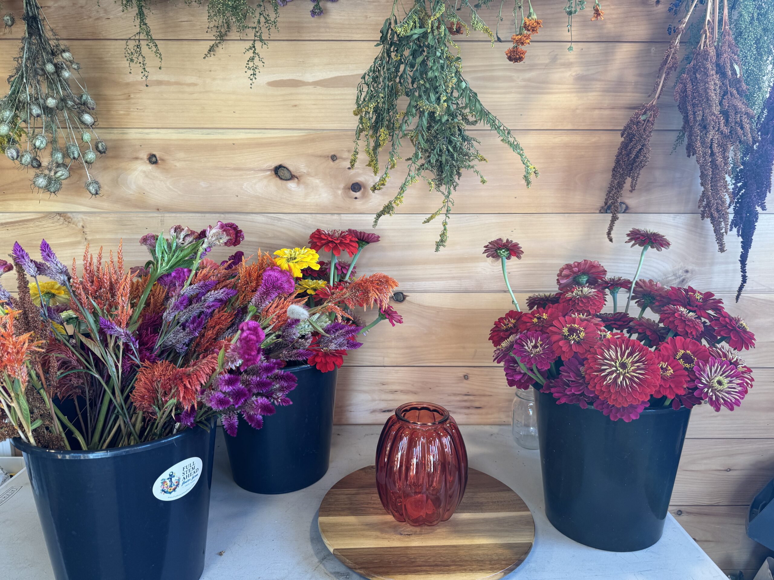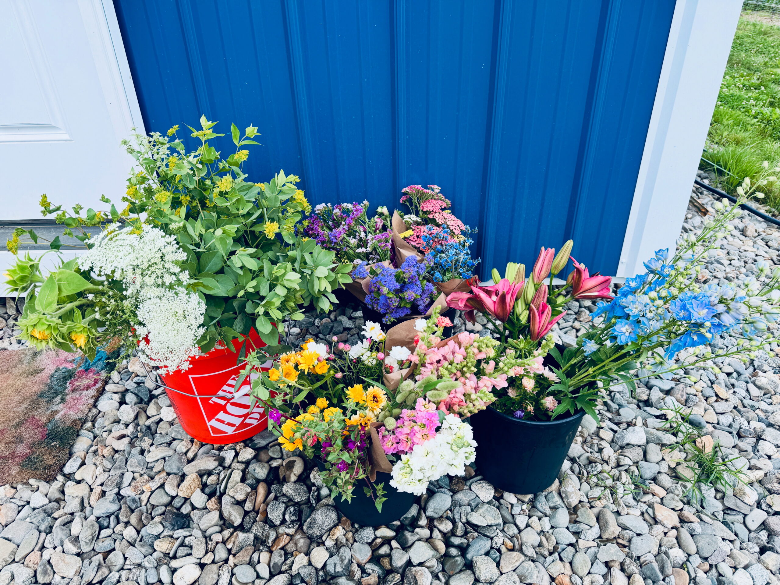 Please contact us with the date of your special event and which colors you prefer. Please indicate if you would like to pick your buckets up from the farm for free the day before your event or request delivery for a fee.